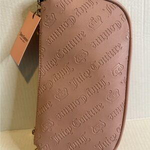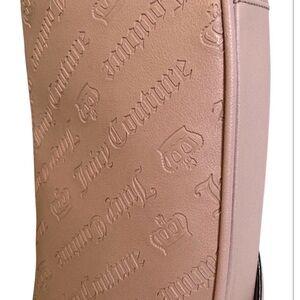 Chic Juicy Couture shoulder bag in blush. Features gold chain strap and embossed logo. Perfect for any occasion.