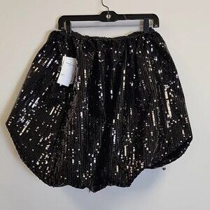 NWT! NICHOLE LYNEL THE LABEL Black Sequin Party Glam Puff Bubble Mini Skirt