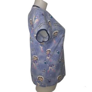 BETTY BOOP Baby Its Cold Outside Blue Scrub Scrubs Top Womens Size Small