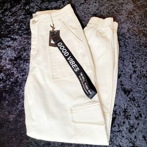 Cargo Denim Joggers by American Bazi (Los Angeles)featuring a stylish Good Vibes lanyard tag.