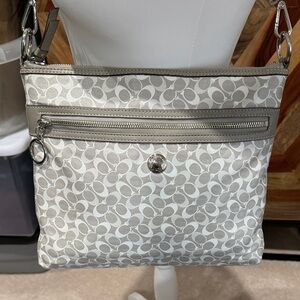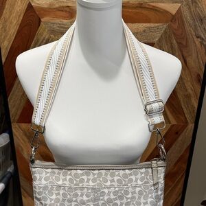 Elegant crossbody bag with signature pattern. Features front zip pocket and secure closure. Ideal for daily use.
