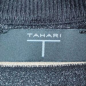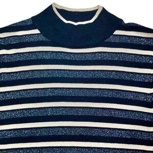 Tahari Striped Mock Neck Top in Black/Gold/Silver Women’s S