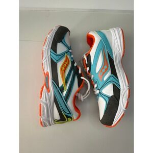 Saucony Grid sneakers combine a retro athletic aesthetic with vibrant pops of orange, teal, and lime green. These performance-inspired shoes feature a breathable white mesh base reinforced with synthetic overlays and a durable rubber outsole for reliable traction. The padded collar and tongue ensure a comfortable fit, while the classic Grid cushioning technology provides support for everyday wear or light training.