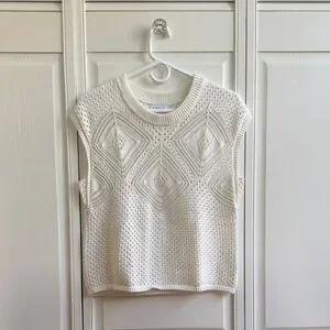 Chic sleeveless sweater. Features intricate knit pattern. Perfect for layering.