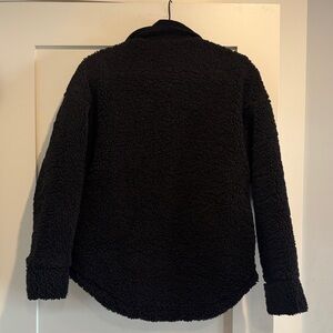 Cozy black sherpa jacket. Features a button-up front. Single chest pocket.