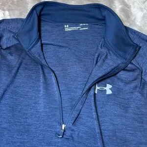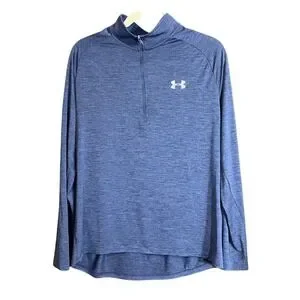 Under Armour Mens Size Large 1/2 Zip Blue Heather HeatGear Pullover Tech 2.0