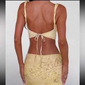 Fitted low rise maxi skirt in yellow butterfly paisley print