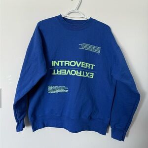 Friday + Saturday Introvert Extrovert Blue Sweater