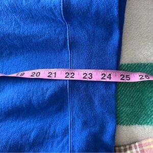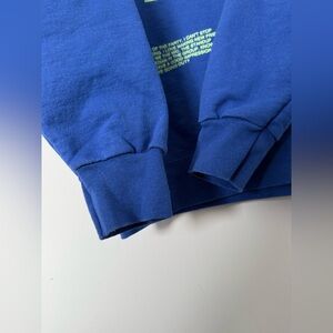Super cute lounging sweater in a bright cobalt blue with green lettering.