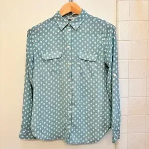 LOFT Blue Acorn Pattern Button Long Sleeves Size Small Cottagecore Grannycore