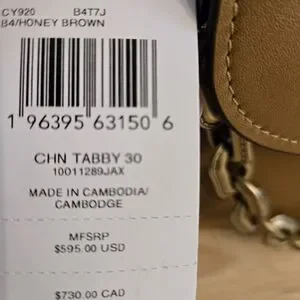 Coach Chain Tabby 30 In Honey Brown.