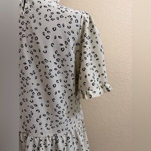 Stylish cream blouse with leopard print. Features playful ruffle sleeves. Perfect for casual outings.