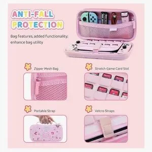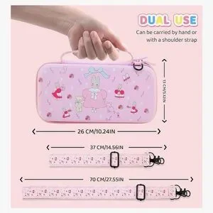 HYPERCASE Pink Bunny for Nintendo Switch OLED Case with carrying strap