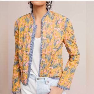 Anthropologie Yellow Floral Waverly Quilted Jacket