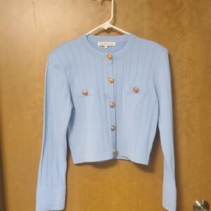 NWT Endless Rose structured knit jacket in soft baby/sky blue 💙 Size Large.