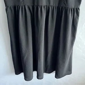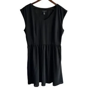 The product is a Gap Women's black ruffle dress, designed with a sleeveless style, round neck, and knee-length hem. This dress is suitable for various occasions such as travel, parties, casual wear, and workwear. The dress features a fit and flare and A-Line silhouette, making it a versatile and classic addition to the wardrobe. Perfect for the seasons of summer, fall, and spring, this dress in size 10 is a stylish choice for city outings.