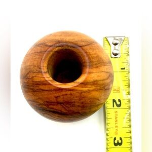 This vintage mid-century modern treasure is a hand turned receptacle for six (6) individual relish forks. Olive wood base and four handles, c. 1970s.