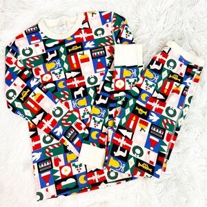 Hanna Andersson multicolor holiday Christmas PJ lounge set long sleeves jogger bottom pants.