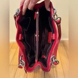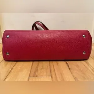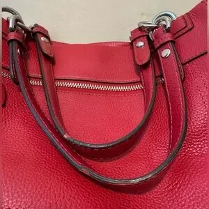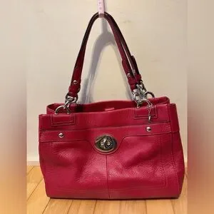 Coach Red Pebbled Leather Turnlock Tote Shoulder Bag Silver Hardware