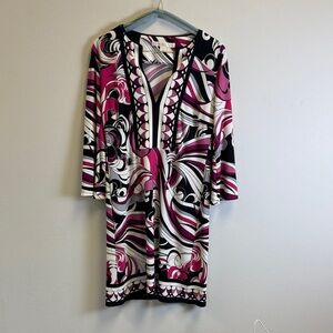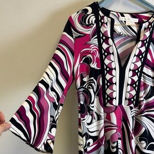 Chic dress with striking pink and black stripes. Elegant and modern style.