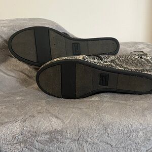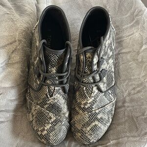 ⭐Toms Tom's TOMS Kala Faux Snake skin lace up ankle boots booties shoes wedges stacks gray cream animal print reptile casual dressy work play rubber outsoles round toe spring summer fall winter autumn date night party wedding baby shower girls night school office NWOB new without box size 9 womens SHOE BOX CLOSET