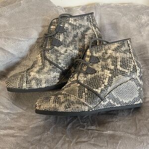 NWOB Tom's Kala Faux Snake Skin Wedge Ankle Boots Size 9 Womens