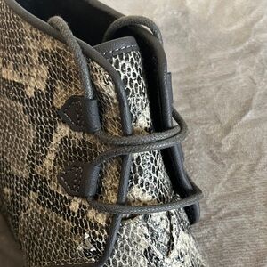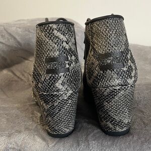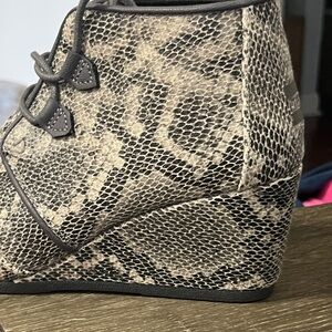 Step out in style with these chic snakeskin lace up ankle boots. Perfect for adding a bold touch to any outfit. Great with jeans or dresses. Wear them casually or dress them up. Wearable year round. Great for work, play, parties, etc.... Wedge is 2 3/4" in height. New without box.