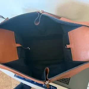 Please note a small, faint imperfection on the exterior leather below the embossed logo, visible upon close inspection. This appears to be a minor factory-related mark and does not affect functionality. Please review all photos carefully.