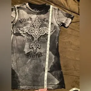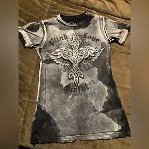 Sinful brand, size medium, 100% cotton, black and gray tee