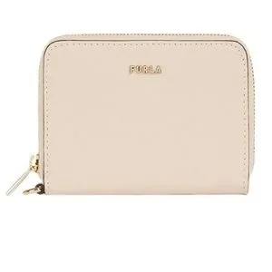 Elegant Furla wallet. Soft beige color. Gold zipper accent. Compact and stylish.