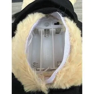 Push the button on the bears left hand and hear the tune! Switch in the battery compartment to turn on and off.