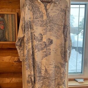 H&M Cream and Blue (a flowy and light silky satin feel) Scenic Button Down Shirt