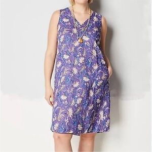 Gorgeous excellent condition J. Jill 100% v-neck linen shift dress in a beautiful purple color with white floral design. It is lightweight and comfortable for all day wear and has side pockets. Perfect for vacation, beach, resortwear, and other casual wear. Perfect for most seasons, just add a cardigan when it is cooler! P2P measurement is 23” and it is a size large. It is a relaxed fit and falls just to the knee or slightly above/below depending on height.