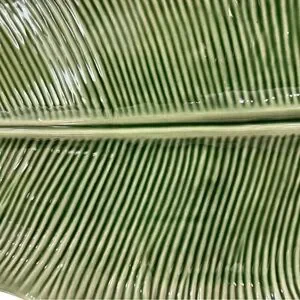 Bordallo Pinheiro Green Banana Leaf Platter 19 X 11 inches Portugal Glazed Serve ware. Beautiful platter in excellent condition. This platter has a ruffled edge and a central vein down the middle with textured ridges. it was made in Caldas de Raines Portugal. No chips cracks or other issues.