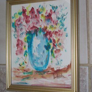 The product is an new original 8x10, total framing under glass is approximately 11 1/4"x9 1/4"x1/4" impressionistic watercolor painting titled "Passion Red Floral" by Texas artist Davila. Handmade and signed by Davila, this unique piece is framed and comes with a Certificate of Authenticity. This one-of-a-kind artwork, created in 2026, depicts a vibrant floral subject in an impressionist style, making it a captivating addition to any art collection.