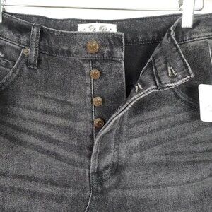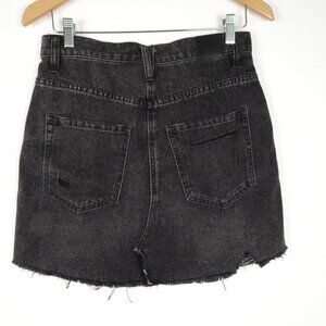 Free People Denim Mini Skirt Size 28 Black Button Fly Brea Boho Raw Hem