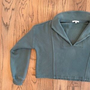 Good condition. Hardly worn. Z Supply Modern V-Neck Weekender sweatshirt in a botanical green color. This sweatshirt is made of a soft fleece material and features a wide v-neck collar, long sleeves, and a cropped length.