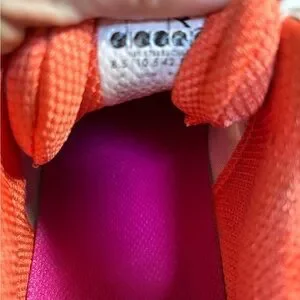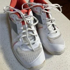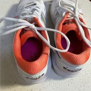 Stylish diadora pickleball shoes. White with pink/orange accents. Perfect for getting out on the court. 8.5