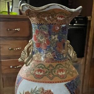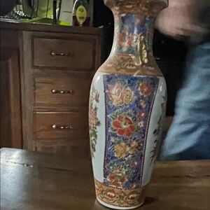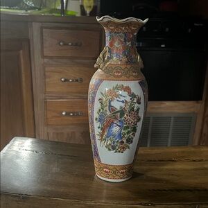 Elegant Handpainted Multicolor Porcelain Vase with Bird Motif