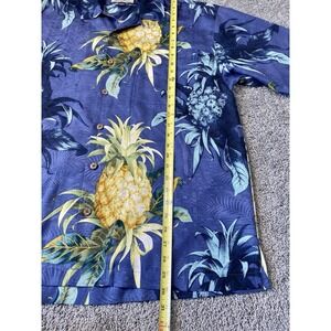 Tommy Bahama Mens Large 100% Silk Pineapple AOP Camp Hawaiian Shirt Resort Blue