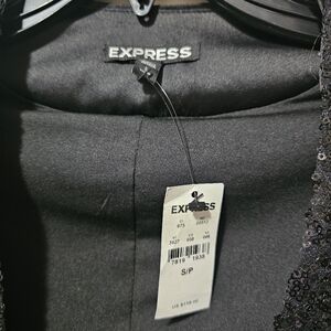 NWT Black Express Sequin 3/4 Sleeve Singke Button Blazer S