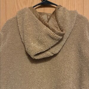 Stay warm and stylish with this cozy tan sherpa jacket. Perfect for layering in cooler weather.