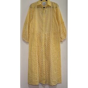 Area Stars Luna Dress Yellow Eyelet Puff Sleeve Midi Dress Cottagecore NWT L
