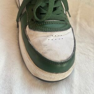 Heelys skate shoes with a sleek black and green design. Perfect for casual wear and skating fun. Scuffed up right heel from stopping, and some other scuffs, see pictures. Definitely not perfect condition but still has life let in them!
