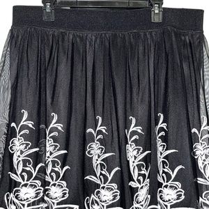 Alfani Floral Pleated Skirt - Black & White - Size XL