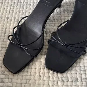 Designed by Tom Ford. Chic black heels with elegant straps and fab bamboo 2” heels. Perfect for stylish outings. From a smoke-free home. Size 8 ½”. Hardly worn. I adore them but have too many shoes!