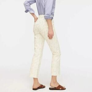 J. Crew Eyelet High Rise Billie Demi-Boot Crop Jean Cream Floral Embroidery, 34”