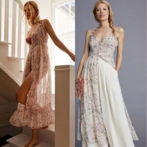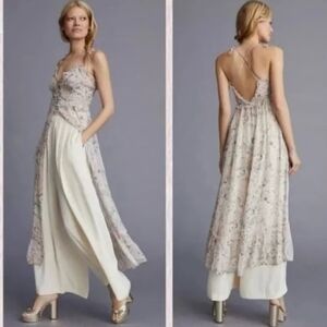 Anthropologie Asymmetrical Floral Dress in Pink and Cream