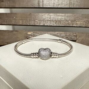 Pandora great shape moments sparkling crystal cz pave heart snake chain bracelet