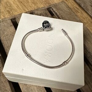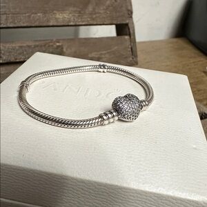 Authentic 6.7” 17cm Pandora great shape moments sparkling crystal cz pave heart snake chain starter charm s925 ale sterling silver stamped bracelet. Does not come with gift box. Comes with mesh gift bag.